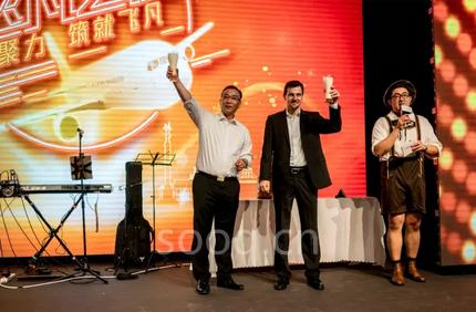 當(dāng)晚,KUKA為大家呈現(xiàn)了一場德國巴伐利亞啤酒節(jié)風(fēng)格的晚宴KUKA機(jī)器人中國首席執(zhí)行官孔兵先生輕快的祝酒詞拉開了整場晚宴的序幕,身穿巴伐利亞傳統(tǒng)民族服裝的舞蹈演員翩翩起舞,晚宴期間驚喜不斷歡笑不止。最后,所有到場嘉賓的共同舞動(dòng)環(huán)節(jié),將晚宴推向了高潮。。KUKA與所有的系統(tǒng)合作伙伴們通過進(jìn)一步深入交流,提高KUKA服務(wù)中國市場的質(zhì)量,凝心聚力,共同為推動(dòng)中國自動(dòng)化業(yè)和制造業(yè)的全面發(fā)展而努力。