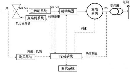 從上圖中可以看出,風(fēng)力發(fā)電就是通過(guò)傳感器獲得當(dāng)前的風(fēng)速和風(fēng)向,然后主控系統(tǒng)根據(jù)內(nèi)部控制算法調(diào)節(jié)風(fēng)機(jī)的方向以及槳葉的槳距,從而讓風(fēng)機(jī)盡可能地保持可滿足發(fā)電功率的轉(zhuǎn)速,再通過(guò)發(fā)電系統(tǒng)及變壓器將風(fēng)機(jī)發(fā)出的電能并網(wǎng)到電網(wǎng)。