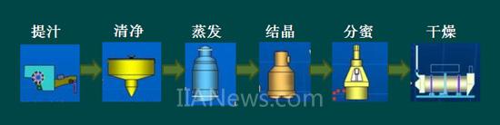 甘蔗制糖工序一般包括提汁、清凈、蒸發(fā)、結(jié)晶、分蜜和干燥。具體如下圖示: