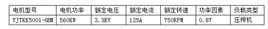 現(xiàn)場改造部分是預(yù)壓榨機組。改造前:預(yù)壓榨機組采用汽輪機帶動,由于汽輪機效率低,糖分抽出率不高。所以改成異步電動機+變頻器調(diào)節(jié)的方式。異步電機的詳細(xì)參數(shù)見下表:
