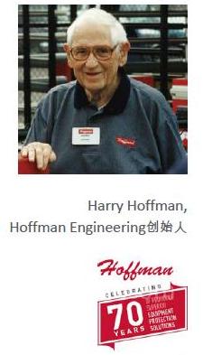 激情和創(chuàng)新使Harry Hoffman在隨后的幾十年間取得了不菲的成就。1945年,Harry發(fā)明了壓力機(jī)安全保護(hù)裝置。這是一種電子設(shè)備,在操作人員的手處于危險(xiǎn)環(huán)境時(shí)可以快速停止機(jī)器運(yùn)行。很快他又有了一連串的發(fā)明,例如蒲公英掘具、碟靶投擲器、廚房用電動(dòng)攪拌器、晾衣繩掛鉤、便于農(nóng)民操作庭院柱桿燈的Switch-O-Lite開(kāi)關(guān)、用于家庭布線(xiàn)的接線(xiàn)箱以及為農(nóng)用設(shè)備供電的電源插座 - 后兩項(xiàng)被視為是 Hoffman首個(gè)機(jī)柜系列的前身。Harry在Hoffman Engineering工作了將近40年,直到1992年退休。