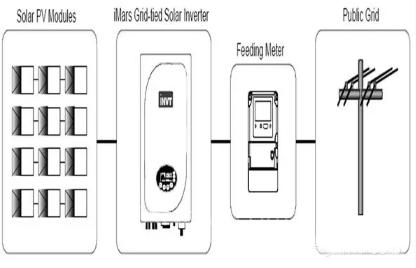 通過電池PV組件吸收太陽(yáng)光照,直流電通過逆變器的轉(zhuǎn)變,最終輸出到辦公室用電,剩余電量可并入電網(wǎng)進(jìn)行銷售而獲取投資回報(bào)。
