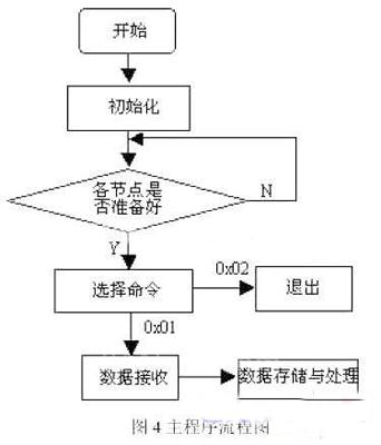 主機程序包括測量和控制子程序、通信子程序、數(shù)據(jù)處理子程序等。數(shù)據(jù)測量和控制子程序用來控制下位機進(jìn)行測量,通信子程序根據(jù)通信協(xié)議發(fā)送控制命令并接收測量數(shù)據(jù),數(shù)據(jù)處理子程序?qū)崿F(xiàn)對數(shù)據(jù)的預(yù)處理和存儲。主機程序用C語言編寫。主機程序流程見圖4。