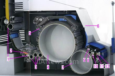 1-喂棉羅拉 2-給棉板 3-三刺輥4-錫林 5-蓋板 6-前后罩板 7-道夫 8-剝?nèi)×_拉9-清潔輥 10-上下軋輥 11-喇叭口 12-大壓輥