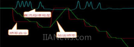 圖2 加減速時的變頻器頻率命令、實(shí)際輸出頻率、DCBUS電壓波形