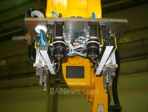 于是,埃夫特公司與康耐視就此項(xiàng)目進(jìn)行了深入交流,并展開合作。在康耐視強(qiáng)大的技術(shù)支持下,埃夫特公司開發(fā)出了集成Basler雙目相機(jī)和康耐視VisionPro 3D軟件的視覺抓取機(jī)器人(如圖1所示)。該系統(tǒng)在抓取缸蓋應(yīng)用中,比前一套系統(tǒng),不但在效率有大幅度提升、準(zhǔn)確率達(dá)到100%,而且價(jià)格還有較大幅度降低。該機(jī)器人一經(jīng)應(yīng)用就獲得了奇瑞汽車交口贊賞,并在工博會(huì)上贏得業(yè)界廣泛的關(guān)注。