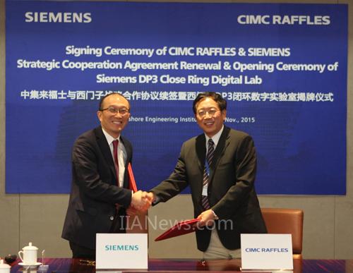 2015年11月3日,西門子攜手中集來福士海洋工程有限公司(中集來福士)共同打造的“DP3閉環(huán)數(shù)字實(shí)驗(yàn)室”在中集海洋工程研究院正式揭牌。同日,雙方簽署新一階段的戰(zhàn)略合作協(xié)議,中集來福士將利用西門子的數(shù)字化企業(yè)解決方案來實(shí)現(xiàn)其未來發(fā)展戰(zhàn)略。