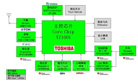 2015年11月24日,致力于亞太地區(qū)市場的領(lǐng)先半導(dǎo)體元器件分銷商----大聯(lián)大控股宣布,其旗下世平推出基于Toshiba TZ1000系列的智能手表解決方案,該方案可通過BLE連接手機(jī)并將采集到的心跳、計(jì)步等數(shù)據(jù)傳至手機(jī)上。