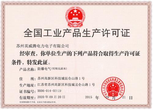 蘇州英威騰榮獲國家質(zhì)檢總局頒發(fā)的《全國工業(yè)產(chǎn)品生產(chǎn)許可證》,這對于蘇州英威騰來說,意味著其能自主生產(chǎn)防爆電氣產(chǎn)品,并符合資格要求。