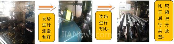 打標完成后,發(fā)送信息給PLC和DataMan 302讀碼器,讀碼器讀完碼后進行信息對比,并將對比結果發(fā)送給PLC控制機械手,以進行分類堆放。