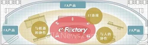 展臺(tái)設(shè)置層層遞進(jìn),體現(xiàn)了以e-F@ctory為核心,解決方案發(fā)揮中堅(jiān)力量,F(xiàn)A產(chǎn)品提供廣泛基礎(chǔ)支撐的格局。