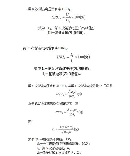 周期性交流量中含有的第h 次諧波分量的方均根值與基波分量的方均根值之比(用百分?jǐn)?shù)表示),第h 次諧波電壓含有率以HRUh 表示;第h 次諧波電流含有率以HRIh 表示。