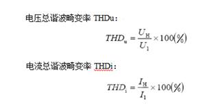 周期性交流量中的諧波含量的方均根值與其基波分量的方均根值之比(用百分?jǐn)?shù)表示)。電壓總諧波畸變率以THDu 表示;電流總諧波畸變率以THDi 表示。