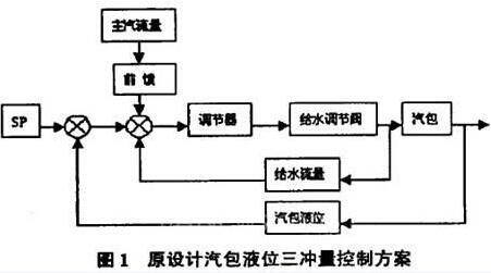 在HS2000DCS控制點的組態(tài)中。運用RPV點中的表達式及折線化算法,很容易實現(xiàn)以上補償關系。原設計所給出的汽包液位三沖量控制方案如圖1所示。