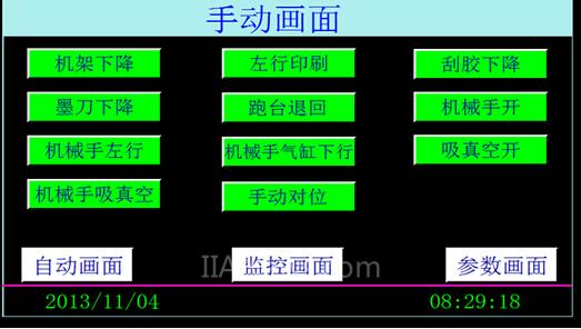 2、手動(dòng)畫面:設(shè)備手動(dòng)運(yùn)行時(shí)的工作畫面。