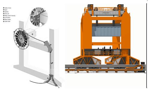 電纜卷筒系統(tǒng)自重:約7噸(卷筒+電纜+安裝鋼結(jié)構(gòu))