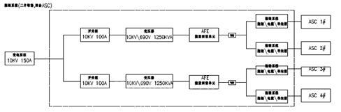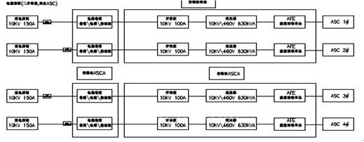 為了方便對比,我們選取2片堆場共四臺ASC。電纜卷筒采用10KV 50Hz 交流高壓供電;拖鏈系統(tǒng)采用690V 50Hz 低壓交流供電。