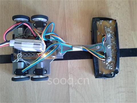 如果你無意中發(fā)現(xiàn)了這臺(tái)3D打印追蹤器,一定會(huì)被它食蟻獸一般的外形所吸引。為什么這個(gè)機(jī)器人的前伸部分與后半部分距離如此之遠(yuǎn)?傳感器被安裝在前伸部分,離輪胎如此遠(yuǎn)有著特殊的原因。這個(gè)傳感器是用來檢測線條軌跡的,所以離輪胎越遠(yuǎn),機(jī)器就有更多的時(shí)間進(jìn)行反應(yīng)。