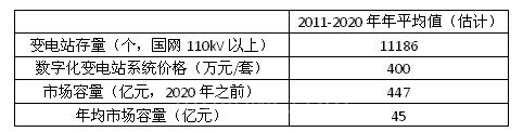 圖表 2011-2020年我國(guó)數(shù)字化變電站市場(chǎng)容量預(yù)測(cè)