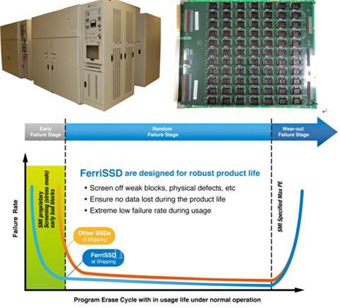 在服務器應用中,任何缺陷都可導致停機 - 這是不可接受的情況。作為最有效的防護措施,所有的 FerriSSD 都按客戶要求的溫度 (商用級溫度或工業(yè)級溫度),在裝運前進行 100% 的篩選。大規(guī)模生產(chǎn)時,通過 Silicon Motion 的支持以全溫度范圍在板上進行燒錄,潛在的弱單元將被有效篩選掉,從而防止在使用過程中停機。從多年使用 Silicon Motion 的 NAND 進行專利工藝設計的經(jīng)驗來看,F(xiàn)erriSSD極低的dPPM能夠滿足當今實際嵌入式服務器市場的嚴格要求。