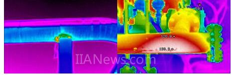 A 管道堵塞,由于堵塞部位和其他部位熱容量不同導(dǎo)致溫差,這些溫差傳遞到管線外殼,就可以使用紅外熱像儀在管道外部拍攝到故障。