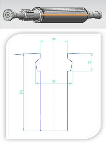 圖2. 對1000MW及以上的二級發(fā)電機(jī)轉(zhuǎn)子來說,整體靜態(tài)撓度大,其本體嵌線槽由于槽深深度大,槽壁薄,剛性差,易引起加工變形,加工困難
