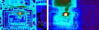 左圖:未涂覆發(fā)射率增強涂料的印刷電路板。 右圖:使用涂料的缺點在于減少了精細的細節(jié)信息。