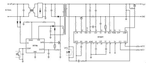 大聯(lián)大品佳代理的Richtek(立锜科技)推出RT7786+RT7207為一高整合度PWM +USB-PD Controller,它具備許多特征能提升低功率反馳式(Low-power Flyback)變壓器的性能,特別針對于USB充電的應(yīng)用方面,已取得USB-PD 協(xié)會認證。該方案能以最簡化的回路設(shè)計完成。使用RT7786+RT7207將能夠同時實現(xiàn)低成本、體積小、重量輕的產(chǎn)品設(shè)計。
