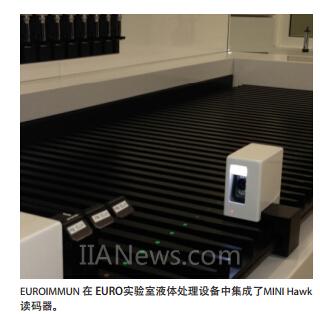 EUROIMMUN 同樣也在新產(chǎn)品 EURO實(shí)驗(yàn)室液體處理儀器中集成了邁思肯的超緊湊MINI Hawk 讀碼器用于智能化的移液。MINI Hawk 用于快速完整地讀取樣品、試劑和配件的信息從而降低液體處理過程中的時(shí)間。