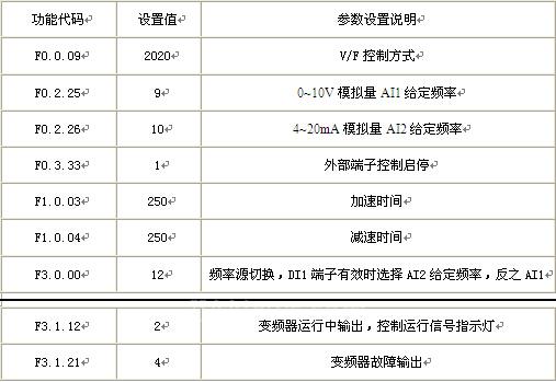 引風(fēng)機(jī)變頻器參數(shù)設(shè)置如下表1