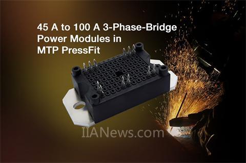 Vishay推出的45A~100A的三相橋功率模塊采用超薄MTP PressFit封裝,可用于焊接機、UPS和電機驅(qū)動。