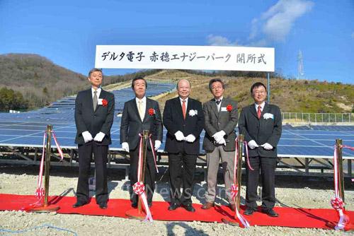 臺(tái)達(dá)首座自營(yíng)大型太陽(yáng)能發(fā)電廠-“臺(tái)達(dá)赤穂節(jié)能園區(qū)”于今(15)日完工揭幕。這座位于日本兵庫(kù)縣赤穂市山區(qū)、裝置容量4.6MW的新電廠占地面積96,000平方米,最大特色是以中型太陽(yáng)能光伏逆變器打造分布式架構(gòu)發(fā)電系統(tǒng),以因應(yīng)不規(guī)則地形并提升整體發(fā)電效率,為日本最大等級(jí)采用分布式系統(tǒng)的特高壓太陽(yáng)能電廠,并聯(lián)到33,000伏的電網(wǎng),預(yù)計(jì)年發(fā)電約490萬(wàn)度,相當(dāng)于供應(yīng)當(dāng)?shù)?30個(gè)住戶一年用電所需。根據(jù)日本可再生能源特別處置法,“臺(tái)達(dá)赤穂節(jié)能園區(qū)”發(fā)電所得電力將全數(shù)有償提供給電力公司,也為臺(tái)達(dá)開(kāi)創(chuàng)新的運(yùn)營(yíng)模式。