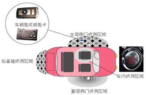 鑰匙被喚醒將分析汽車發(fā)出的認證口令,并發(fā)送相應信號,這些信號經過加密處理,以提高安全性。汽車對接收信號和汽車內部保存的信息相比較,如果驗證通過,汽車將打開車門鎖。駕駛員進入車內,只需要簡單的單擊啟動鍵,汽車發(fā)動機就會啟動。駕駛員在按鍵的時候,PKE 系統(tǒng)首先需要檢測“鑰匙”設備是否在車內,然后完成同樣的認證過程后才會啟動發(fā)動機。
