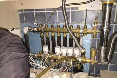 第二步,開啟地暖壁掛爐,將水溫調(diào)節(jié)至60℃或者更高,以便形成明顯的溫度對比,方便找出漏水點。這里需要注意的是,不用每個分管路都通熱水,那樣會干擾熱像儀找出問題點。正確的做法是,打開可疑的分管路以及遠離這一路的其他一條管路。在現(xiàn)場我們知道第三路很可疑,而第三路在一樓衛(wèi)生間內(nèi),所以我們選擇打開第三路以及遠離衛(wèi)生間的負責加熱客廳的第四路。有些情況下,只打開第三路也是可以的,這取決于第三路管道是否夠長,管道內(nèi)的水是否足以讓壁掛爐不要高溫報警。