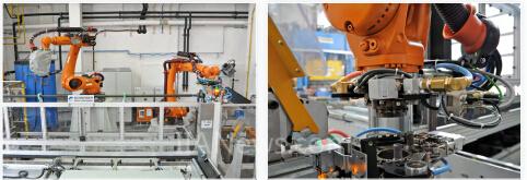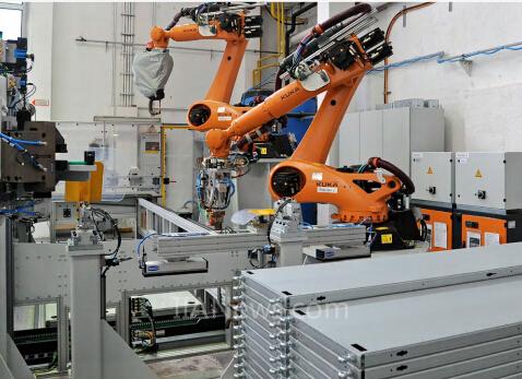 使用兩個 KR 150 R 3300 prime K 型號的庫卡 QUANTEC 機器人,其按程序執(zhí)行的生產步驟為:凸焊、點焊、搬運、沖壓、成型以及最后放置已安裝完畢的門扇。搬運超大尺寸的門扇對于最大負載能力 150 千克以及作用范圍 3301 毫米的KR QUANTEC 來說完全不成問題。庫卡機器人控制系統 KR C4 以其卓越的性能令人信服。高性能控制器可輕松應對豐富的程序多樣性以及由此產生的控制任務的復雜性。因此,所有參數并未保存在 PLC 中,而是保存在機器人控制系統中。
