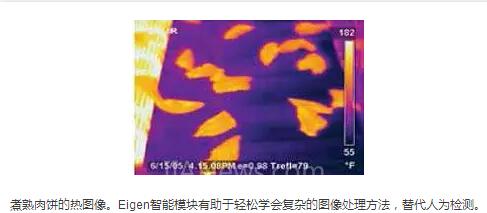Eigen智能模塊也是一個(gè)自學(xué)習(xí)系統(tǒng),可用于單獨(dú)的解決方案中,但如果作為更大架構(gòu)中的組成部分,或用于更復(fù)雜的處理系統(tǒng),該模塊就會(huì)從熱像儀中收集培訓(xùn)數(shù)據(jù),在云端排列數(shù)據(jù),并反饋到模塊中。實(shí)際上,也就是該軟件會(huì)自編寫。該模塊可用于多種自動(dòng)化應(yīng)用系統(tǒng)中,包括零件制造、造紙、食品加工、消防和狀態(tài)監(jiān)控。當(dāng)然,Eigen Innovations 一直走在研發(fā)新應(yīng)用的前沿。