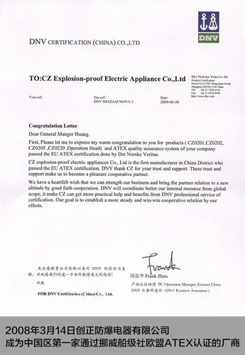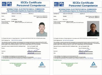 2016年1月30日,創(chuàng)正防爆首獲由德國(guó)萊茵TUV頒發(fā)的IECEx05 CoPC防爆人員資格證書。經(jīng)過(guò)嚴(yán)格的培訓(xùn)、理論考試、實(shí)際操作能力的審核以及最后的綜合評(píng)定,最終,創(chuàng)正防爆技術(shù)部和外貿(mào)部的相關(guān)學(xué)員通過(guò)了考核,獲得了IECEx05證書,成為中國(guó)首批獲取此證書的學(xué)員之一。