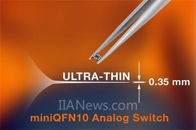 賓夕法尼亞、MALVERN — 2016 年 3 月 7 日 — 日前,Vishay Intertechnology, Inc.(NYSE 股市代號(hào):VSH)宣布,推出厚度為0.35mm的超薄1.4mm x 1.8mm miniQFN10封裝的音頻接孔探測(cè)器DG2592和低壓雙路SPDT模擬開(kāi)關(guān)DG2750,用來(lái)替代便攜式應(yīng)用中常用的尺寸較大的miniQFN10和WCSP器件,達(dá)到節(jié)省空間的目的。新的Vishay SiliconixDG2592音頻接孔探測(cè)器和DG2750低壓雙路SPDT模擬開(kāi)關(guān)是采用增強(qiáng)封裝的新系列方案中的首批器件。
