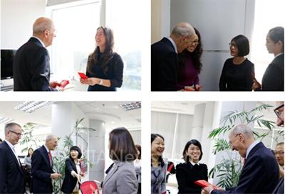 接著,Mr. Leuze和Mr. Balbach分別去到每個部門,與各個部門的員工親切見面握手,并送上祝福及紅包,以最具中國傳統(tǒng)特色的方式傳達最真摯的問候。每位勞易測人也回敬了最美好的祝福,歡欣滿面。