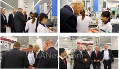 Mr. Leuze, Mr. Balbach, Mr. Hoehl和Mr. Staib參觀生產線。Mr. Leuze和Mr. Balbach感到非常滿意。