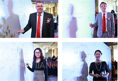 Mr. Matthias Hoehl(左), Mr. Christof Leuze(中)和Mr. Ulrich Balbach(右)在簽名墻前合照留念。