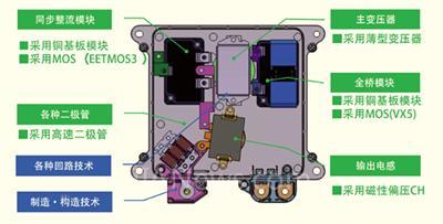通過高效率化與銅基板模塊,該轉(zhuǎn)換器對輸出容量實現(xiàn)了超群的小型化,以及與以前封裝同等成本的模塊化。它采用可定制自產(chǎn)半導(dǎo)體,通過耐壓FET(例如420V、550V等)、防噪聲芯片達到最佳設(shè)計。由于運用了高散熱性模塊與磁性偏壓技術(shù),具有最大電流轉(zhuǎn)換功能,能夠應(yīng)對超出額定電流時瞬間超負(fù)荷。利用防止逆流回路,即使在輸入低電壓時或輕負(fù)載時,也可繼續(xù)同步整流作用。TW-35 03面向Accord HEV已在Accord HEV上實現(xiàn)了量產(chǎn)。還能按照客戶要求的規(guī)格,活用過去的經(jīng)驗,靈活應(yīng)對控制規(guī)格。