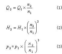 當電動機的轉(zhuǎn)速由n1變化到n2時,Q、H、P與轉(zhuǎn)速的關(guān)系如下: