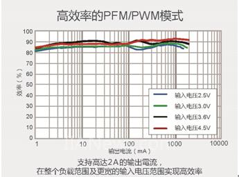 該模式在負(fù)載變動時可自動切換PFM和PWM,從而在整個負(fù)載范圍內(nèi)可實現(xiàn)達(dá)90%的高效率。非常適用于智能手機和平板電腦等工作切換頻繁、重視效率的應(yīng)用。