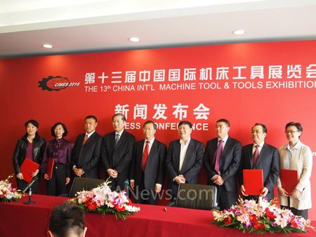 2016年4月6日,北京——第十三屆中國國際機床工具展覽會(CIMES 2016)新聞發(fā)布會隆重召開。發(fā)布會由中國機械工業(yè)集團有限公司、中國機床總公司、北京國機展覽有限公司主辦,中國機械工業(yè)集團有限公司黨委常委、副總經(jīng)理劉敬楨,中國機械工業(yè)聯(lián)合會副會長楊學桐,北京精雕集團副總裁樊一鳴和美國赫克機床(中國)有限公司總經(jīng)理姚雪作為嘉賓出席,中國機床總公司總裁郝明擔任會議主持。發(fā)布會同期,還與中國儀器儀表學會、中國石油和石油化工設(shè)備工業(yè)協(xié)會、中國鑄造協(xié)會簽署戰(zhàn)略合作協(xié)議。