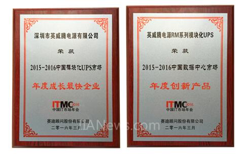 2016年3月18日,主題為“互聯(lián)變革產(chǎn)業(yè)融合驅(qū)動(dòng)創(chuàng)新”的“2016中國(guó)IT市場(chǎng)年會(huì)”在北京香格里拉酒店隆重舉行。英威騰電源公司作為全球領(lǐng)先的數(shù)據(jù)中心能源解決方案提供商和模塊化UPS領(lǐng)導(dǎo)者,在本次活動(dòng)中一舉斬獲“2015-2016中國(guó)IT市場(chǎng)年度成長(zhǎng)最快企業(yè)”和“2015-2016中國(guó)IT市場(chǎng)年度創(chuàng)新產(chǎn)品”兩個(gè)獎(jiǎng)項(xiàng)。