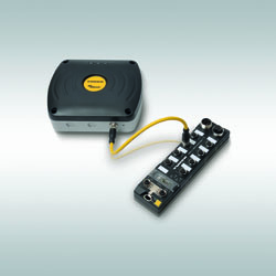 該設(shè)備控制器基于圖爾克堅(jiān)固外殼IP67防護(hù)等級(jí)的TBEN-L RFID模塊平臺(tái),除了可以連接4個(gè)高頻或超高頻的RFID讀寫頭,還可以額外提供8個(gè)可以自由定義的輸入/輸出點(diǎn)。它通過(guò)以太網(wǎng)TCP/IP協(xié)議與更高層的ERP或MES系統(tǒng)通訊。
