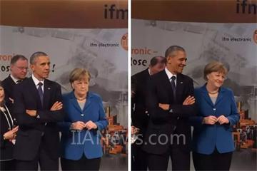 奧巴馬和默克爾參觀魏德米勒展臺(tái)