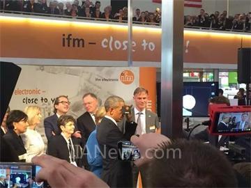 在易福門展臺(tái),奧巴馬總統(tǒng)和默克爾總理詢問了ifm作為中型德國(guó)家族企業(yè)的戰(zhàn)略發(fā)展方向。ifm集團(tuán)董事長(zhǎng)Michael Marhofer解釋道:“我們主要研發(fā)用于觸發(fā)和控制過程的現(xiàn)代傳感器、系統(tǒng)和軟件,它們相互之間依照工業(yè)4.0標(biāo)準(zhǔn)通信?!?/FONT>