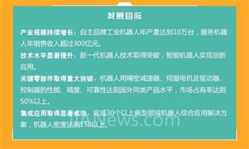 工信部、發(fā)展改革委、財(cái)政部等三部門近日聯(lián)合印發(fā)了《機(jī)器人產(chǎn)業(yè)發(fā)展規(guī)劃(2016-2020年)》,這對(duì)貫徹落實(shí)《中國(guó)制造2025》,引導(dǎo)我國(guó)機(jī)器人產(chǎn)業(yè)健康可持續(xù)發(fā)展具有重大意義。那么,《規(guī)劃》都提出了哪些發(fā)展目標(biāo)?“十三五”時(shí)期又將完成哪些主要任務(wù)?下面一圖讓您讀明白!